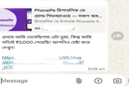 PhonePe-এর নামে ৫ হাজার টাকার লোভ, হোয়াটসঅ্যাপে পাঠানো এই লিঙ্কে ক্লিক করলেই সর্বনাশ!