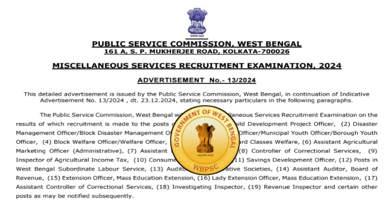 WBPSC Miscellaneous Recruitment 2026: রাজ্য সরকারি চাকরিতে বড় সুযোগ: মিসেলেনিয়াস পরীক্ষার বিজ্ঞপ্তি প্রকাশ করল পাবলিক সার্ভিস কমিশন