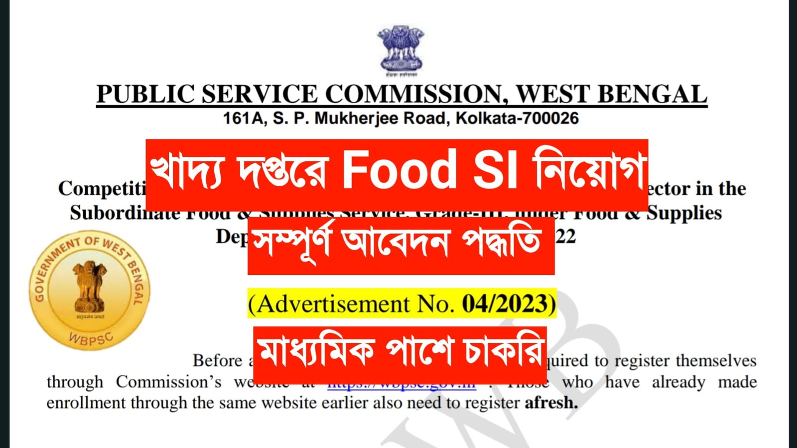 PUBLIC SERVICE COMMISSION, WEST BENGAL এর তরফ থেকে মাধ্যমিক পাশ যোগ্যতায় Food SI পদে কর্মী নিয়োগ এর নতুন নোটিফিকেশন প্রকাশিত করা হলো। মাধ্যমিক পাশ যোগ্যতায় পশ্চিমবঙ্গের যেকোনো জেলার ছেলে-মেয়ে আবেদন করতে পারবেন। আবেদন করতে হবে অনলাইনে, ইতিমধ্যেই আবেদন প্রক্রিয়া শুরু হয়েছে, কিভাবে আবেদন করবেন, কি কি ডকুমেন্টস লাগবে, বেতন কি রয়েছে, আবেদনের শেষ তারিখ কি,নিম্নে বিস্তারিত আলোচনা করা হলো।