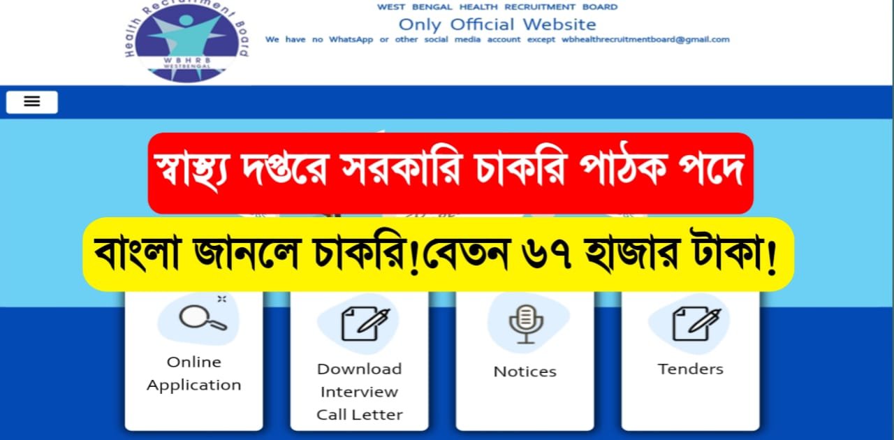 নতুন বছরেই সুখবর আপনার জন্য,কেননা নতুন বছরেই নতুন চাকরির খবর। West Bengal Health Recruitment Board থেকে নতুন চাকরির বিজ্ঞপ্তি প্রকাশিত হলো। আবেদন করতে পারবেন পশ্চিমবঙ্গের যে কোনো জেলা থেকে ইচ্ছুক এবং যোগ্য প্রার্থীরা।