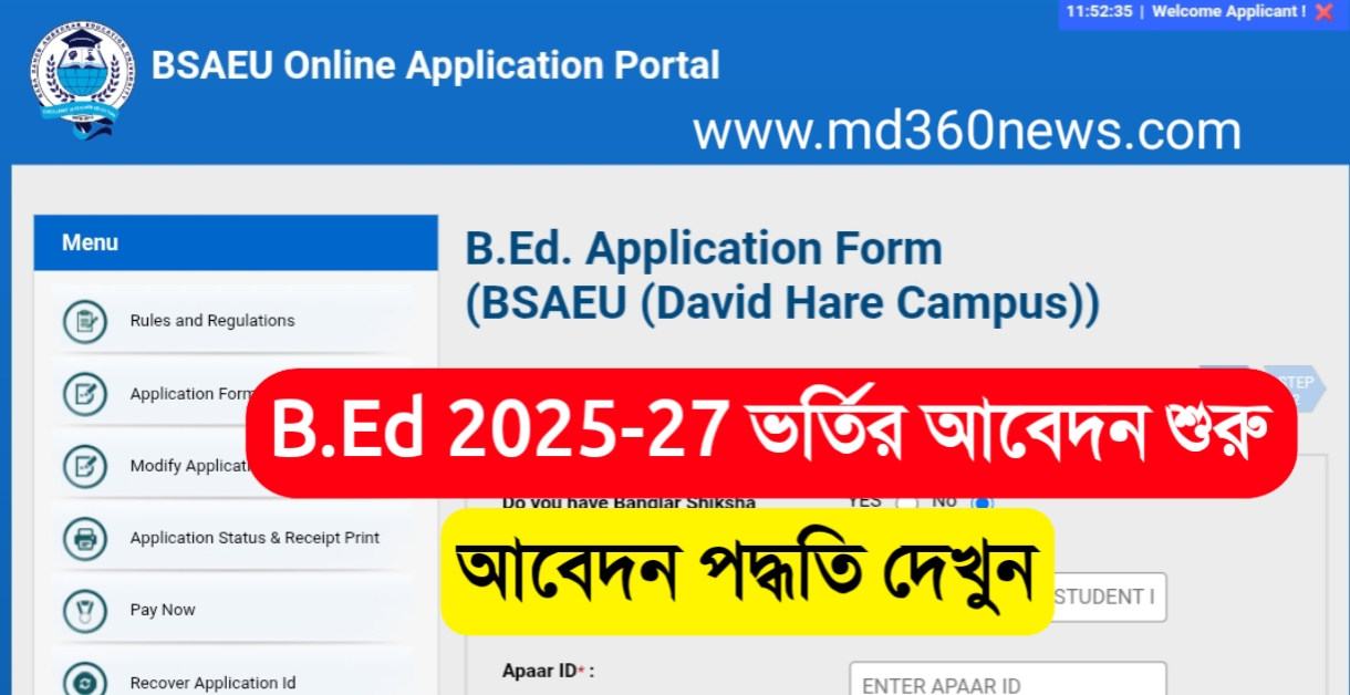 আজকের প্রতিবেদনে দেখে নিন 2025-2027 শিক্ষাবর্ষে B.Ed এ ভর্তি ফর্ম ফিলাপ কিভাবে করবেন, কি কি ডকুমেন্টস লাগবে, আবেদন করার জন্য যোগ্যতা কি চাওয়া হয়েছে, কতদিন পর্যন্ত আবেদন চলবে, বিস্তারিত আলোচনা করা হয়েছে আজকের প্রতিবেদনে।