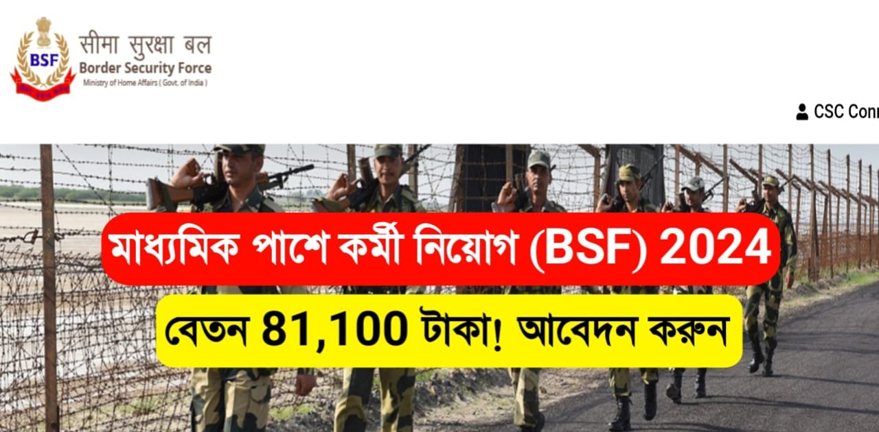 BSF Job 2024:- মাধ্যমিক পাশে বিভিন্ন পদে কর্মী নিয়োগ 2024, বেতন 81,100 টাকা! আবেদন পদ্ধতি দেখুন