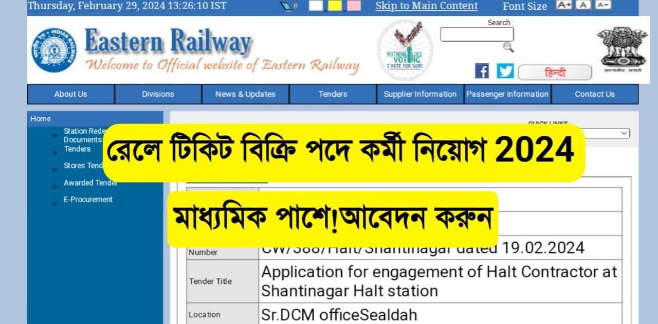 New Job Update News: রাজ্যে রেলের টিকিট বিক্রি পদে কর্মী নিয়োগ 2024,আবেদন করুন!