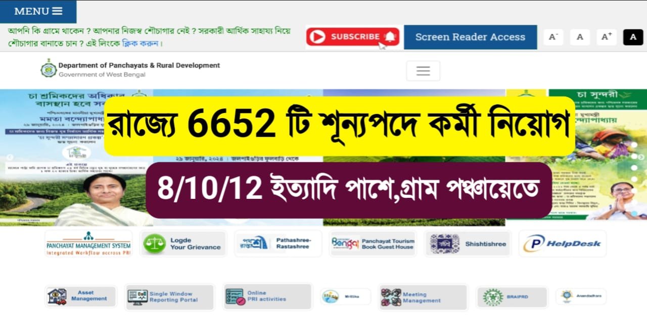 রাজ্যের প্রতিটি জেলার গ্রাম পঞ্চায়েতে 6,652 টি শূন্যপদে বিভিন্ন পদে কর্মরত কর্মী নিয়োগ 2024,দেখুন বিস্তারিত!