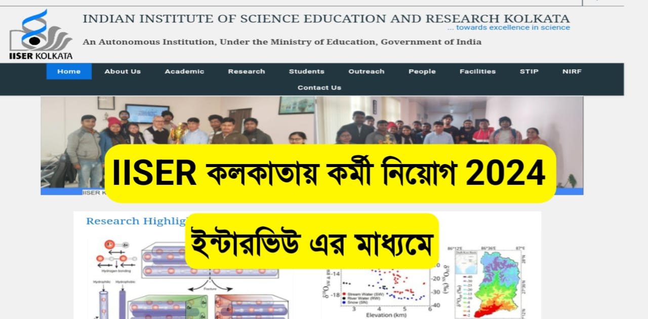 IISER Kolkata Job 2024: রাজ্যে ইন্টারভিউ এর মাধ্যমে কর্মী নিয়োগ,আবেদন করুন!
