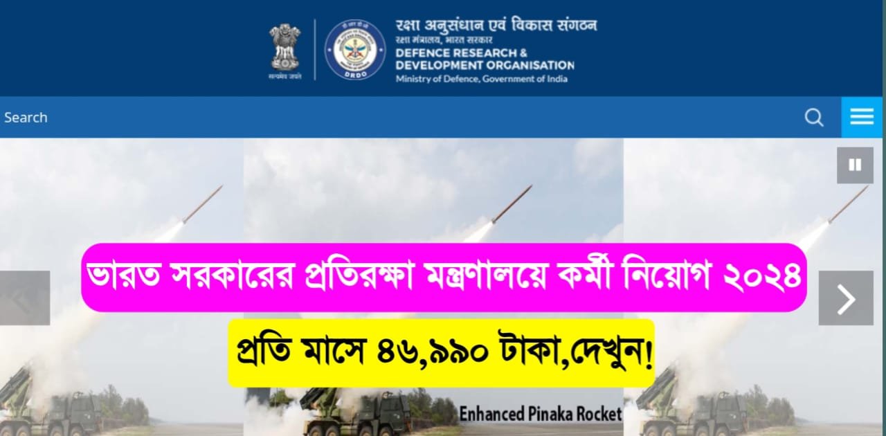 ভারত সরকারের প্রতিরক্ষা মন্ত্রণালয়ে JRF নিয়োগ 2024,প্রতি মাসে ৪৬,৯৯০ টাকা!দেখুন আবেদন পদ্ধতি!