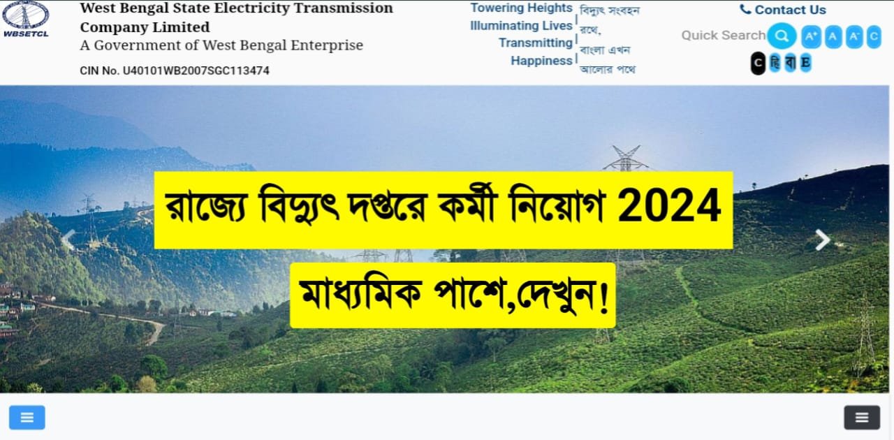 WBSETCL Job 2024: রাজ্যে বিদ্যুৎ দপ্তরে কর্মী নিয়োগ 2024,মাধ্যমিক পাশে!দেখুন আবেদন পদ্ধতি