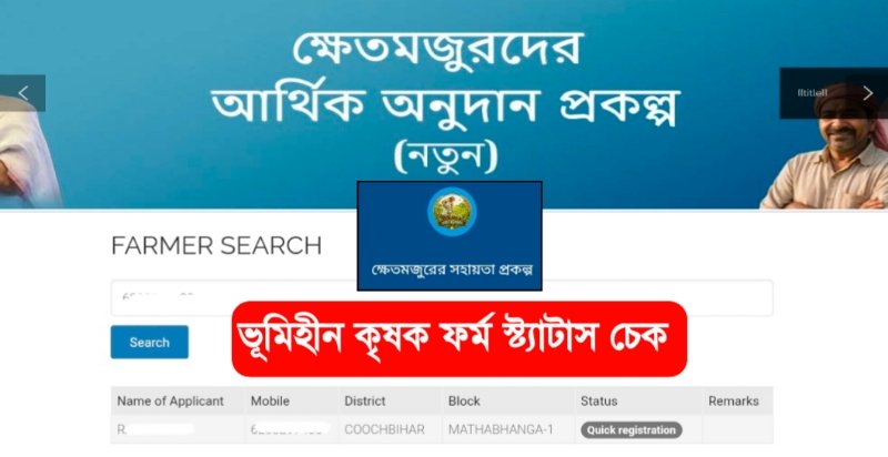 ভূমিহীন কৃষক প্রকল্প Application Status Check Online – নতুন Portal চালু রাজ্য সরকারের / Bhumihin From Fill Up Status Check Online 2026