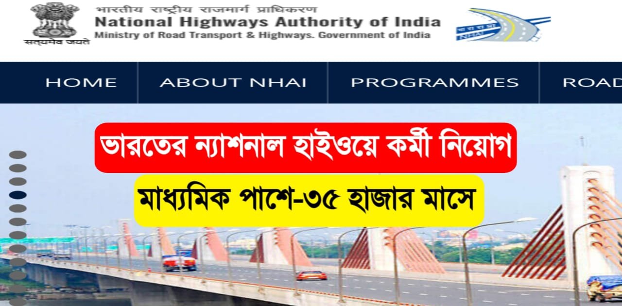 রাজ্যের বিভিন্ন জেলায় কর্মী নিয়োগ হাইওয়েতে,মাধ্যমিক পাশে!বেতন ৩৫ হাজার,পরীক্ষা ছাড়াই নিয়োগ!