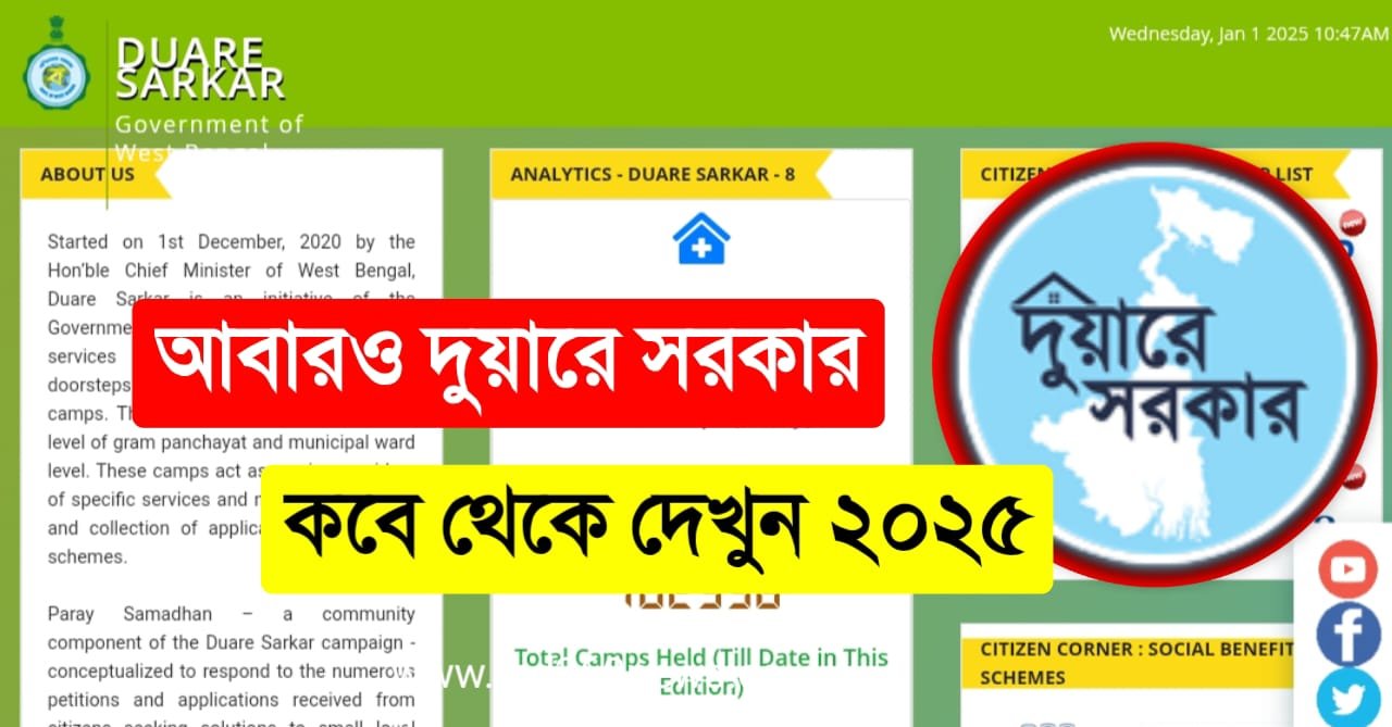 আবারও শুরু রাজ্যে দুয়ারে সরকার ক্যাম্প ২০২৫ – কবে থেকে দেখুন? দুয়ারে সরকার ক্যাম্প লিস্ট 2025
