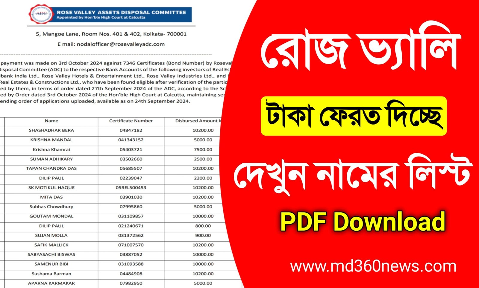 Rose Valley Money Return List Pdf Download: রোজ ভ্যালি চিটফান্ড টাকা ফেরত লিস্ট Pdf Download