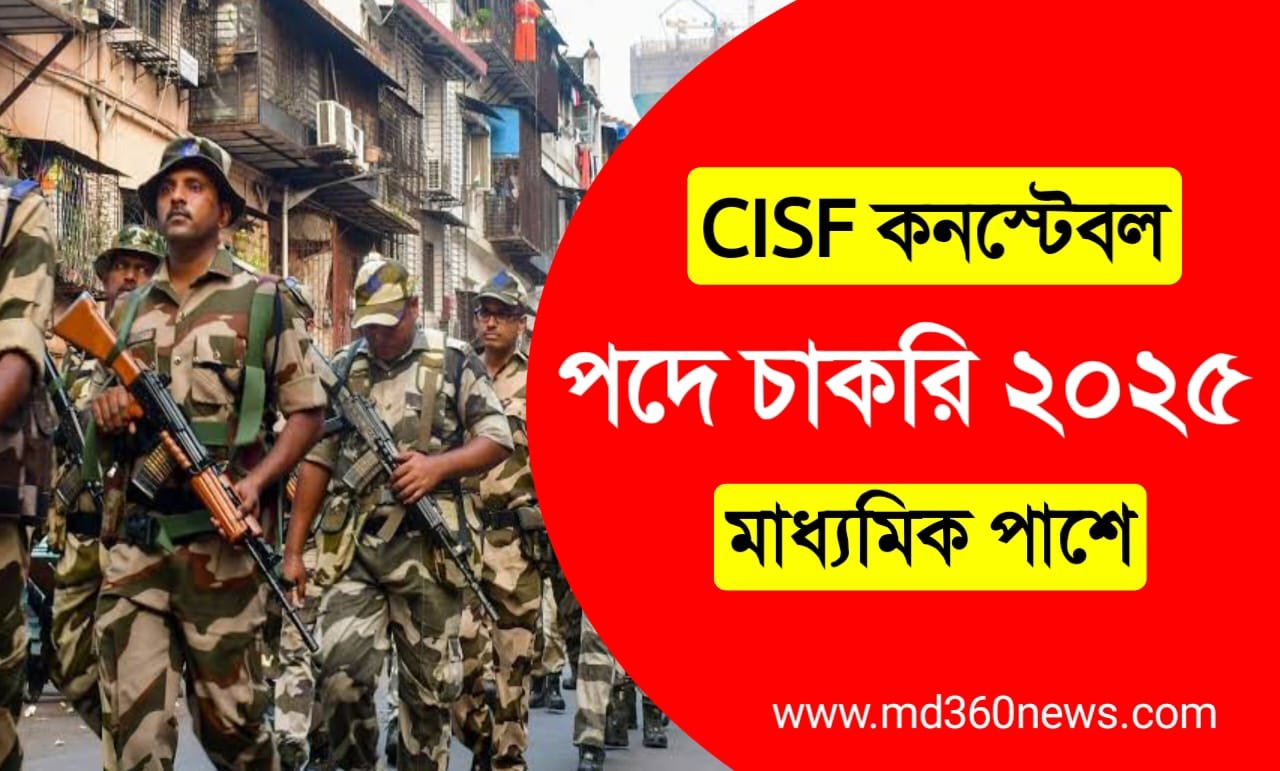 CISF Constable 2025 পদে কিভাবে আবেদন করবেন, কি কি ডকুমেন্টস লাগবে, আবেদন করার জন্য যোগ্যতা কি চাওয়া হয়েছে? বিস্তারিত ভালো ভাবে দেখে নিন আজকের প্রতিবেদনে। আগ্রহী ও যোগ্য প্রার্থীদের আবেদন করতে হবে অনলাইনে।