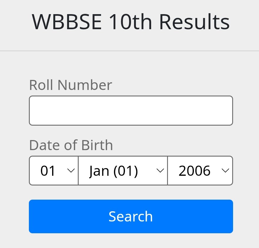 2) এরপর পরবর্তী পেজে মাধ্যমিকের রোল নম্বর ও জন্ম তারিখ উল্লেখ করে সার্চে ক্লিক করুন।