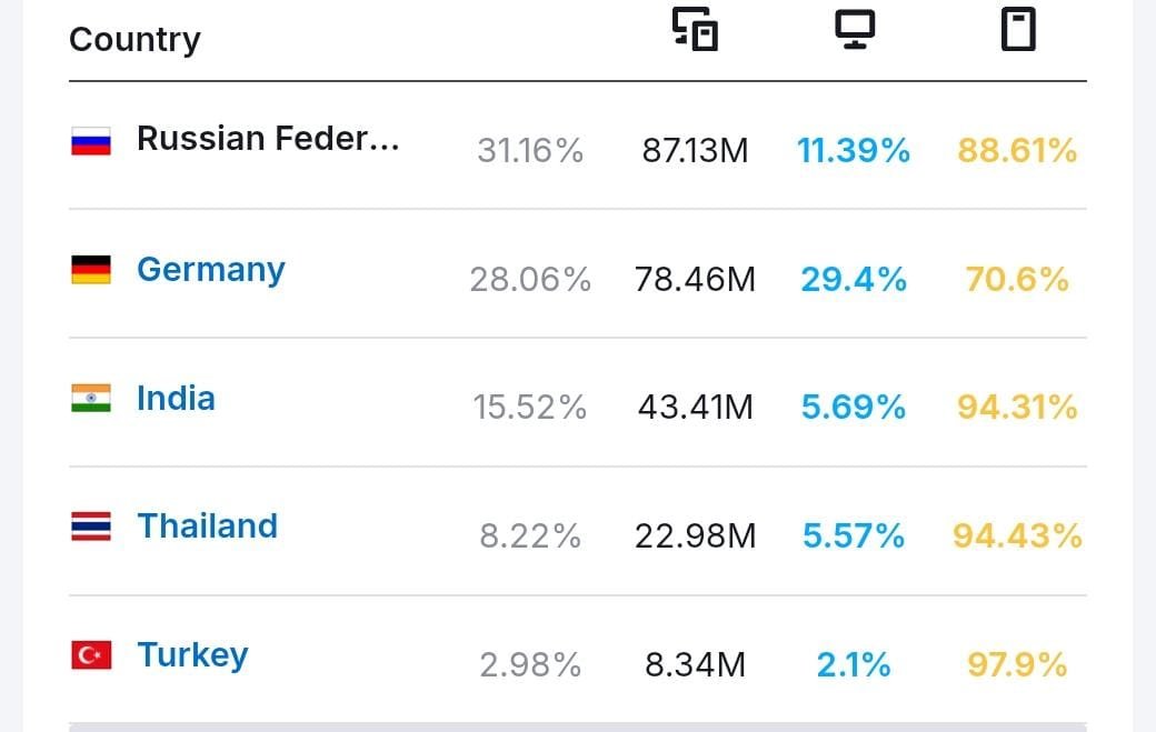 প্রসঙ্গত, পর্ন সাইটে বিশ্বে ১৫ দশমিক ২ শতাংশ ট্রাফিক আসে ভারত থেকে। যেখানে এই বছর অক্টোবর মাসে বিশ্বব্যাপী মোট ভিজিটর সংখ্যা ছিল প্রায় ২৭ কোটি ৩৬ লাখ ৩০ হাজার, সেইখানে ভারতীয়দের ভিজিটর সংখ্যা প্রায় ৪৩ কোটি ৪১ লাখ।