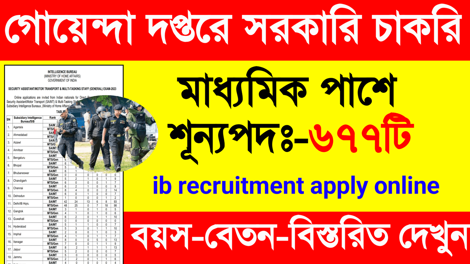 শূন্যপদঃ– ৬৭৭ টি শূন্যপদে গোয়েন্দা দপ্তরে কর্মী নিয়োগ করা হচ্ছে।
