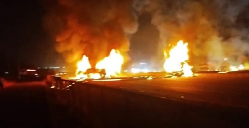 লরির সঙ্গে একটি বাসের ধাক্কায় বাসে আগুন লেগে ১৭ জন যাত্রীর মৃত্যু হয়েছে। আহত হয়েছেন বেশ কয়েক জন। ঘটনাটি ঘটেছে বৃহস্পতিবার ভোররাত একটা নাগাদ কর্ণাটকের ৪৮ নম্বর জাতীয় সড়কে।
