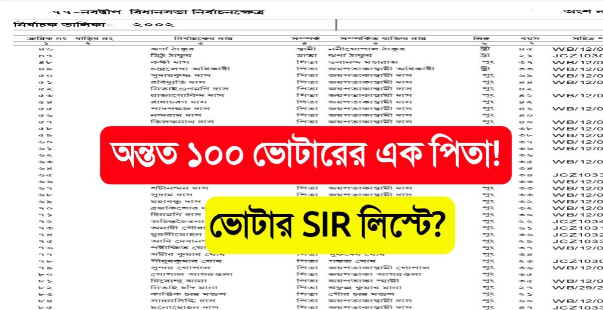 নবদ্বীপে ২০০২ সালের ভোটার তালিকা নিয়ে চাঞ্চল্যকর খবর এক পিতার নামে অন্তত ১০০ ভোটার
