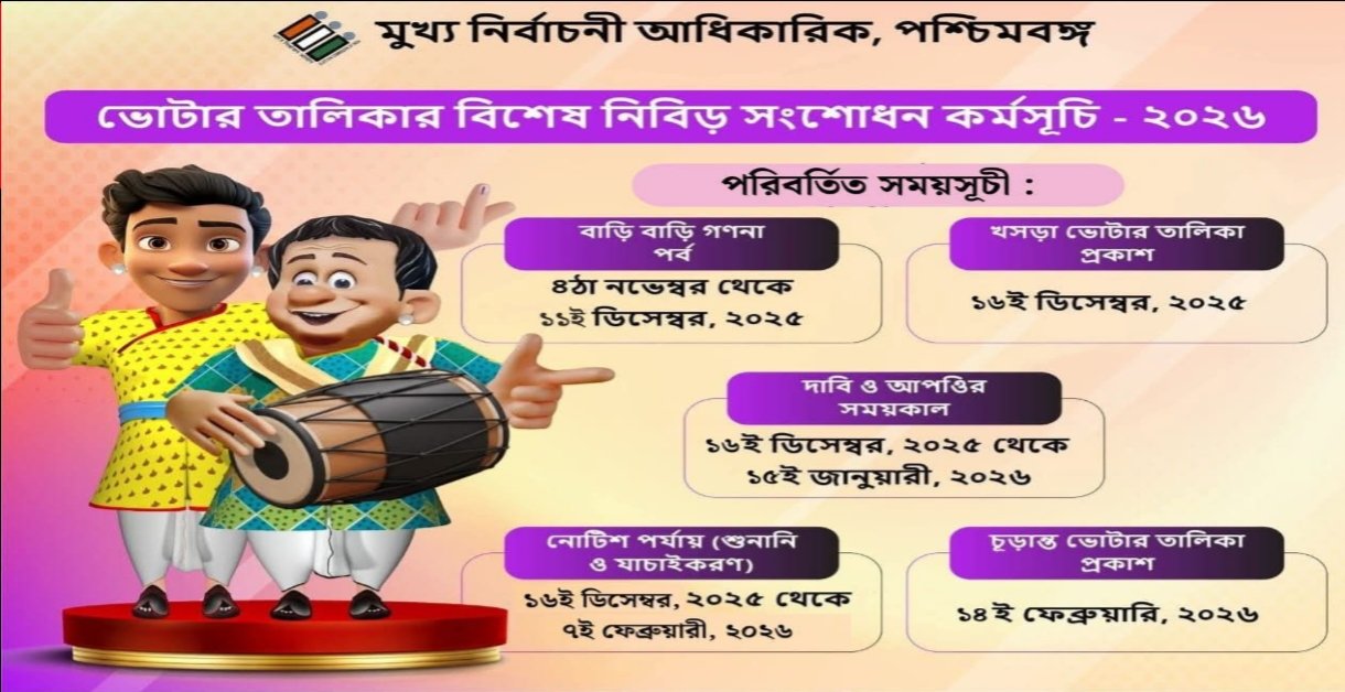 ফাইনাল ভোটার লিস্ট ২০২৬, খসড়া ভোটার তালিকা, এসআইআর ফর্ম পূরণ সময়সূচি পরিবর্তন করলো কমিশন দেখুন!