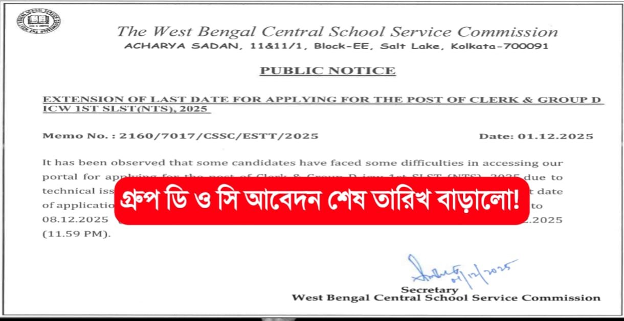 WB Group D & Group C Last Date 2025: গ্রুপ ডি ও গ্রুপ সি পদে আবেদনের শেষ তারিখ কতদিন বাড়লো দেখুন!