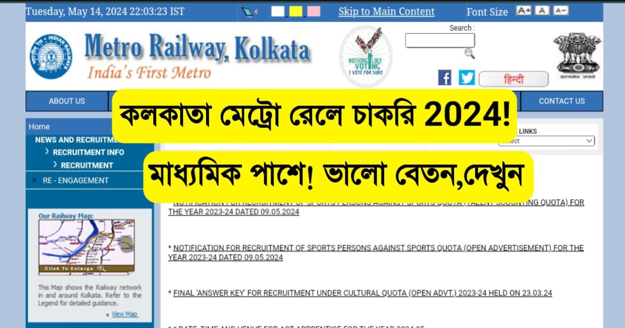 Kolkata Metro Railway Recruitment 2024: আবারও চাকরি মাধ্যমিক পাশে,দেখুন আবেদন পদ্ধতি!