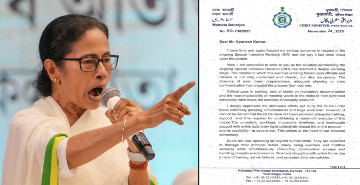 “জীবন ঝুঁকিতে”— SIR থামাতে জরুরি চিঠি নির্বাচন কমিশনকে মুখ্যমন্ত্রী মমতার
