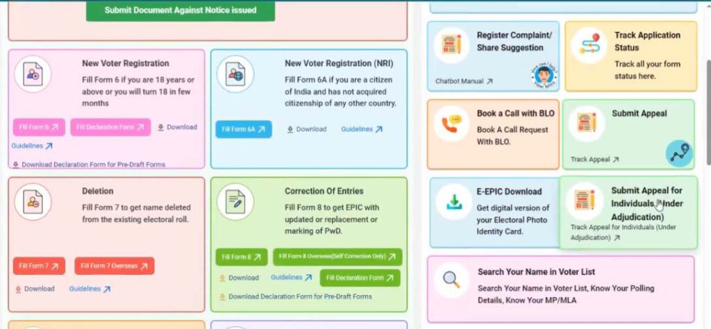 ৩) ভোটার সার্ভিস পোর্টালে থাকা সার্ভিস অপশনে “Submit Appeal for Individuals (Under Adjudication)” – এখানে ক্লিক করুন।