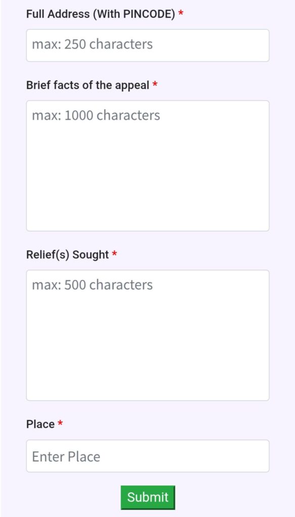 এরপর “Brief Facts of the Appeal” অংশে আপনার সমস্যার বিস্তারিত বিবরণ লিখুন।