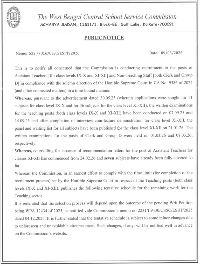 WBSSC IX-X Interview Notification 2026: Download PDF