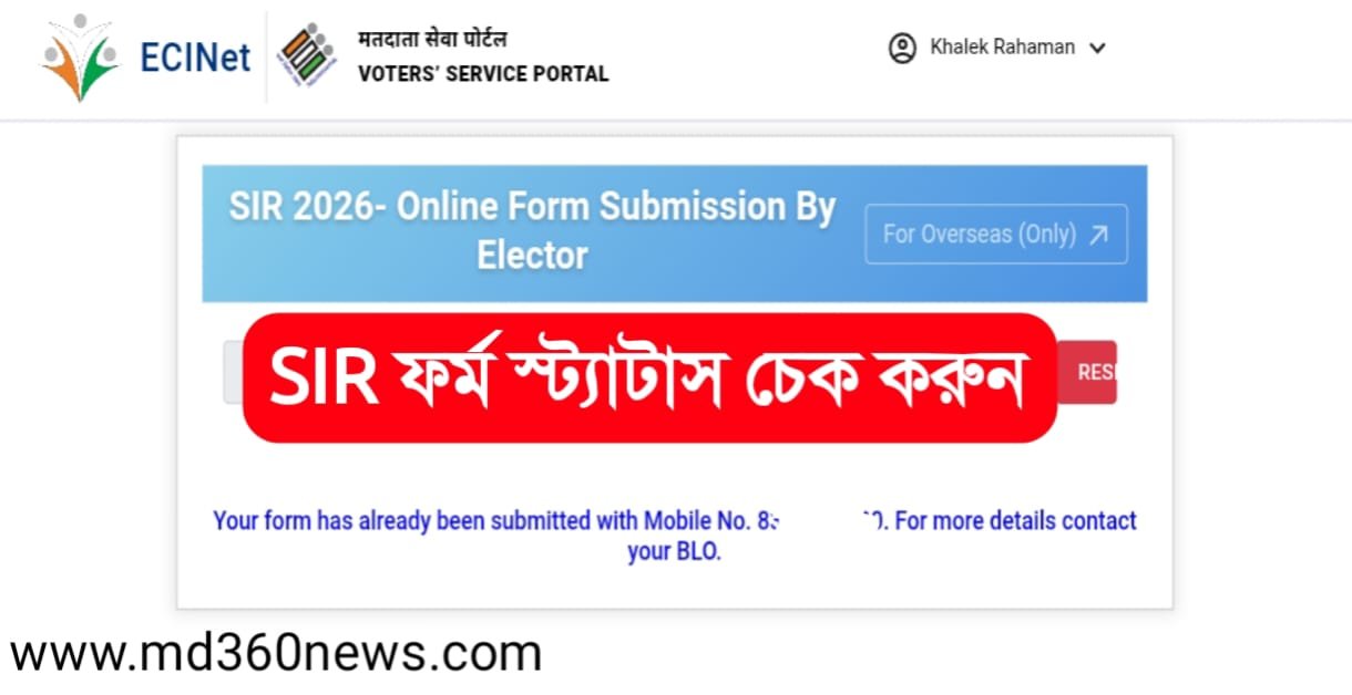 পশ্চিমবঙ্গে আগামী ৪ঠা ডিসেম্বর পর্যন্ত চলবে ভোটার এসআইআর (Voter SIR) এর গণনা ফর্ম পূরণের কাজ। প্রতিটি ভোটারের এই ফর্ম পূরণ করতে হবে। যদি কোনো ভোটার SIR ফর্ম পূরণ করে জমা না করে থাকেন, তাহলে তার নাম ফাইনাল ভোটার লিস্ট থেকে বাদ যাবে।