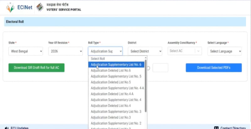 WEST BENGAL 6th SUPPLEMENTARY 2026 LIST