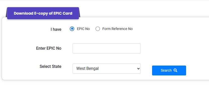 ৫) আপনি একবার ভোটার সার্ভিস পোর্টালে আইডি তৈরি করে নিলে, সেই আইডি দিয়ে সকলের ভোটার কার্ড ডাউনলোড করতে পারবেন। এখন যে ব্যক্তির ভোটার কার্ড ডাউনলোড করতে চাচ্ছেন, তার ভোটার কার্ড নম্বর ও নিচে West Bengal সিলেক্ট করে সার্চে ক্লিক করুন।