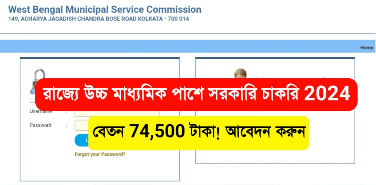 West Bengal Municipal Service Commission থেকে নতুন চাকরির বিজ্ঞপ্তি প্রকাশিত হলো। নিয়োগ করা হচ্ছে শুধুমাত্র উচ্চমাধ্যমিক পাশ শিক্ষাগত যোগ্যতায়। কর্মরত চাকরি প্রার্থীদের জন্য রয়েছে ভালো বেতন। রাজ্যে যোগ্য ও ইচ্ছুক প্রার্থীরা এই পদে আবেদন করতে পারবেন।