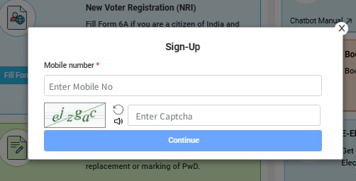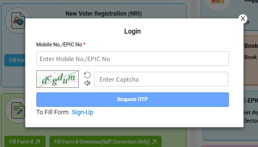 ৪. তারপর নিজের এপিক বা মোবাইল নম্বর দিয়ে OTP র সাহায্যে লগইন করুন। আর আগে থেকে মোবাইল নম্বর দেওয়া না থাকলে, আগে সাইন আপ করুন তারপর লগইন করুন (যদি পূর্বে প্রোফাইল বানিয়ে নেন তাহলে এটি করতে হবে না) ।