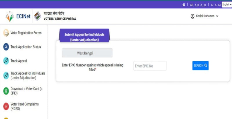 ৮. ট্রাইবুনালে অনলাইনে আবেদন সাবমিট হয়ে গেলে আপনার আপিলটি কোন পর্যায়ে আছে, তা জানার জন্য পোর্টালে ‘Track Appeal for Individuals (Under Adjudication)’ অপশনে ক্লিক করুন। এরজন্য আপনাকে সেই আপিল ভোটারের ভোটার কার্ড নম্বর উল্লেখ করে Search এ ক্লিক করুন। তবে কমিশনের তরফ থেকে জানানো হয়েছে, যদি আপনার নাম চূড়ান্ত বা প্রথম, দ্বিতীয় ও তৃতীয় সাপ্লিমেন্টারি তালিকায় না থাকে এবং আপনি যদি কমিশনের সিদ্ধান্তকে চ্যালেঞ্জ জানাতে চান, তবে হাতে মাত্র ১৫ দিন সময় পাবেন। এই নির্দিষ্ট সময়ের মধ্যে অ্যাপেলেট ট্রাইব্যুনালে আবেদন না করেন, কমিশন ধরে নেবে আপনার আর কোনো অভিযোগ নেই। ফলে ভোটার তালিকায় নাম তোলার সুযোগ সেই বারের মতো চিরতরে হারিয়ে যেতে পারে।
