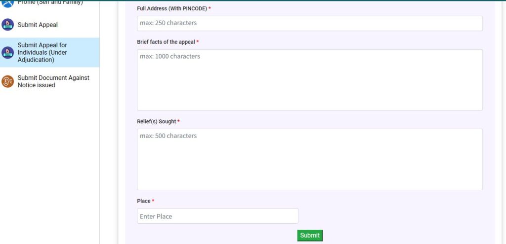 এর পরবর্তী ধাপে, কেন আপনি আপিল করছেন বা আপনার নাম কেন তালিকায় থাকা উচিত, সেই কারণগুলি (Brief facts of the appeal) কমিশনের নির্ধারিত ১০০০ শব্দসীমার মধ্যে বিস্তারিতভাবে লিখতে হবে। আপনি ঠিক কী ধরণের প্রতিকার বা সংশোধন চাইছেন (Relief sought), তা জানাতে হবে ৫০০ শব্দের মধ্যে। সবশেষে, আপনি যেখান থেকে আবেদন করছেন সেই স্থানের (Place) নাম লিখে ‘Submit’ বাটনে ক্লিক করলেই আপনার আবেদন প্রক্রিয়াটি সফলভাবে সম্পন্ন হবে।