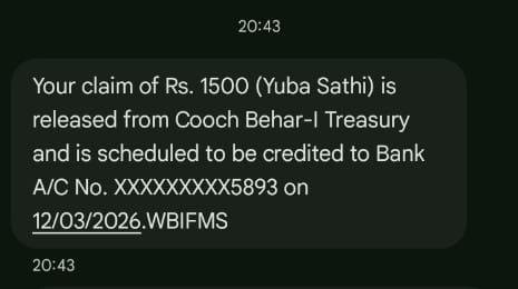 বাংলার যুবসাথী প্রকল্পে অনলাইন ও অফলাইন মিলিয়ে প্রায় ৮৪ লক্ষ বেকার ছেলে-মেয়ে আবেদন জানিয়েছেন।  আগে ঘোষণা করা হয়েছিল যে এই প্রকল্পের টাকা ১ এপ্রিল থেকে দেওয়া হবে।  তবে ভোটের কারণে যাতে টাকা পেতে কোনও বিলম্ব না হয়, সেই কারণেই মুখ্যমন্ত্রী মমতা বন্দ্যোপাধ্যায়ের নির্দেশে গত শনিবার ৭ মার্চ থেকেই আবেদনকারীদের ব্যাংক অ্যাকাউন্টে টাকা পাঠানো শুরু করেছে রাজ্য সরকার।  ২১ থেকে ৪০ বছর বয়সের মধ্যে মাধ্যমিক পাশ বেকার যুবক-যুবতীরা এই প্রকল্পে আবেদন করার যোগ্য।